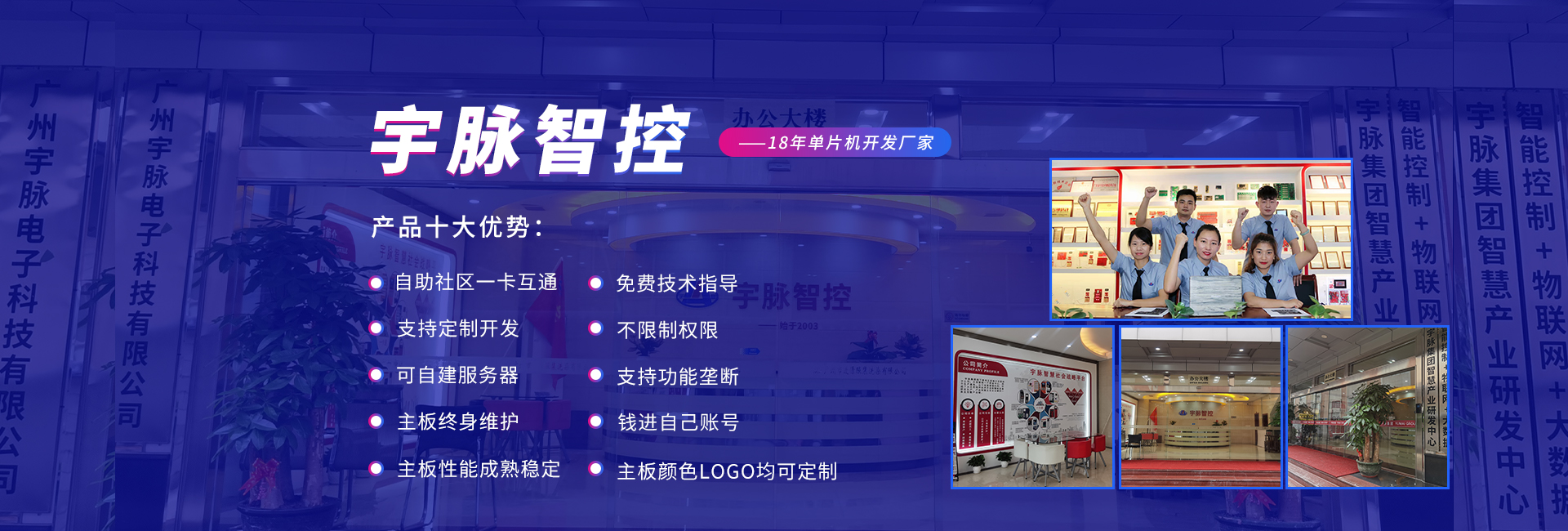 公司前身是2003年成立的宇脈電子石牌經(jīng)營(yíng)部,在廣州新賽格電子城擁有兩個(gè)實(shí)體店,專(zhuān)注于單片機(jī)開(kāi)發(fā)、電子產(chǎn)品定制開(kāi)發(fā)。2014年正式更名為廣州宇脈電子科技有限公司,專(zhuān)注打造無(wú)人值守自助設(shè)備控制系統(tǒng)及后臺(tái)管理系統(tǒng)方案定制的國(guó)家高新技術(shù)企業(yè)。并成為集研發(fā)、生產(chǎn)、銷(xiāo)售和服務(wù)于一體的領(lǐng)軍企業(yè)。